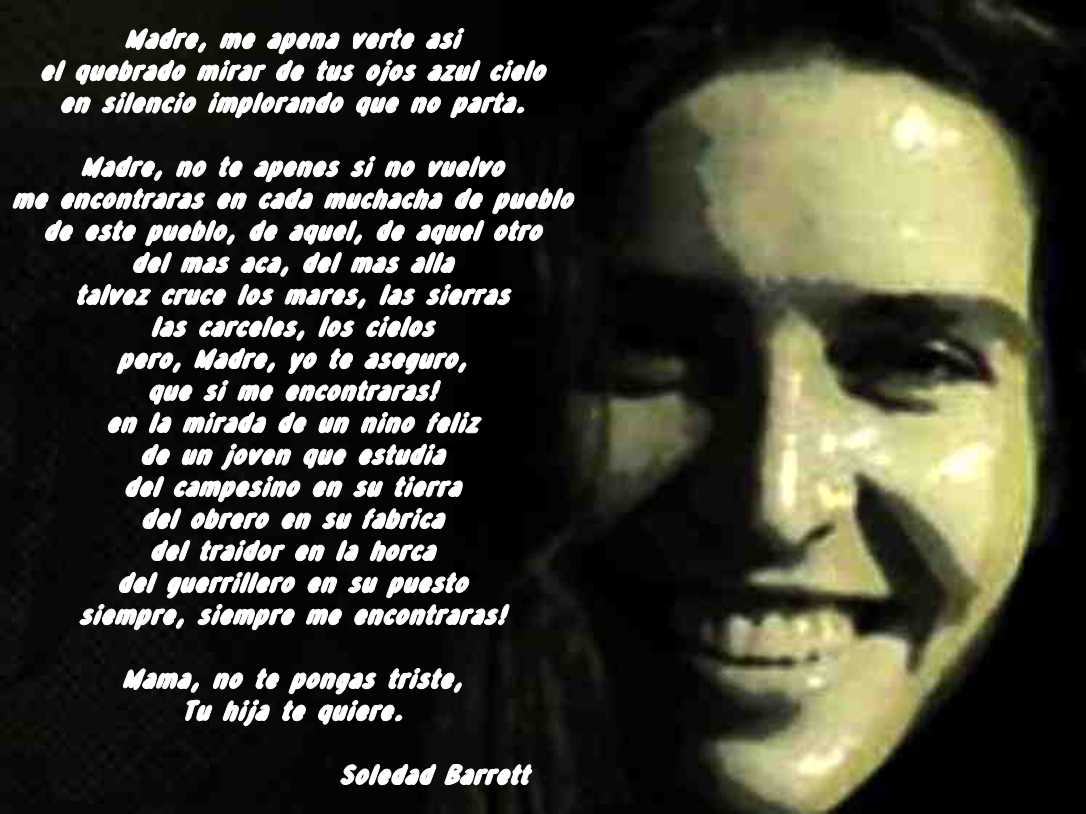 Com frequência, mudavam de um país a outro para escapar de problemas políticos. Onde chegavam, a pequena Soledad se destacava. Ela era uma criatura formosa, de cabelos cor de ouro, macios e longos, pele branca e sobrancelhas de cor castanha escuro quase negra. À medida que crescia, Soledad também passou a se destacar em manifestações políticas. Soledad tinha despertado a sensibilidade social e política muito cedo, desde a adolescência. Ela foi incapaz de escapar dos genes revolucionários de seu avô e seu pai.