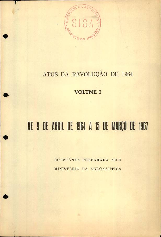 Coletânea dos Atos Institucionais e Complementares baixados pela ditadura civil e militar de 9 de abril de 1964 à 15 de março de 1967, com relação de atingidos nesse período.