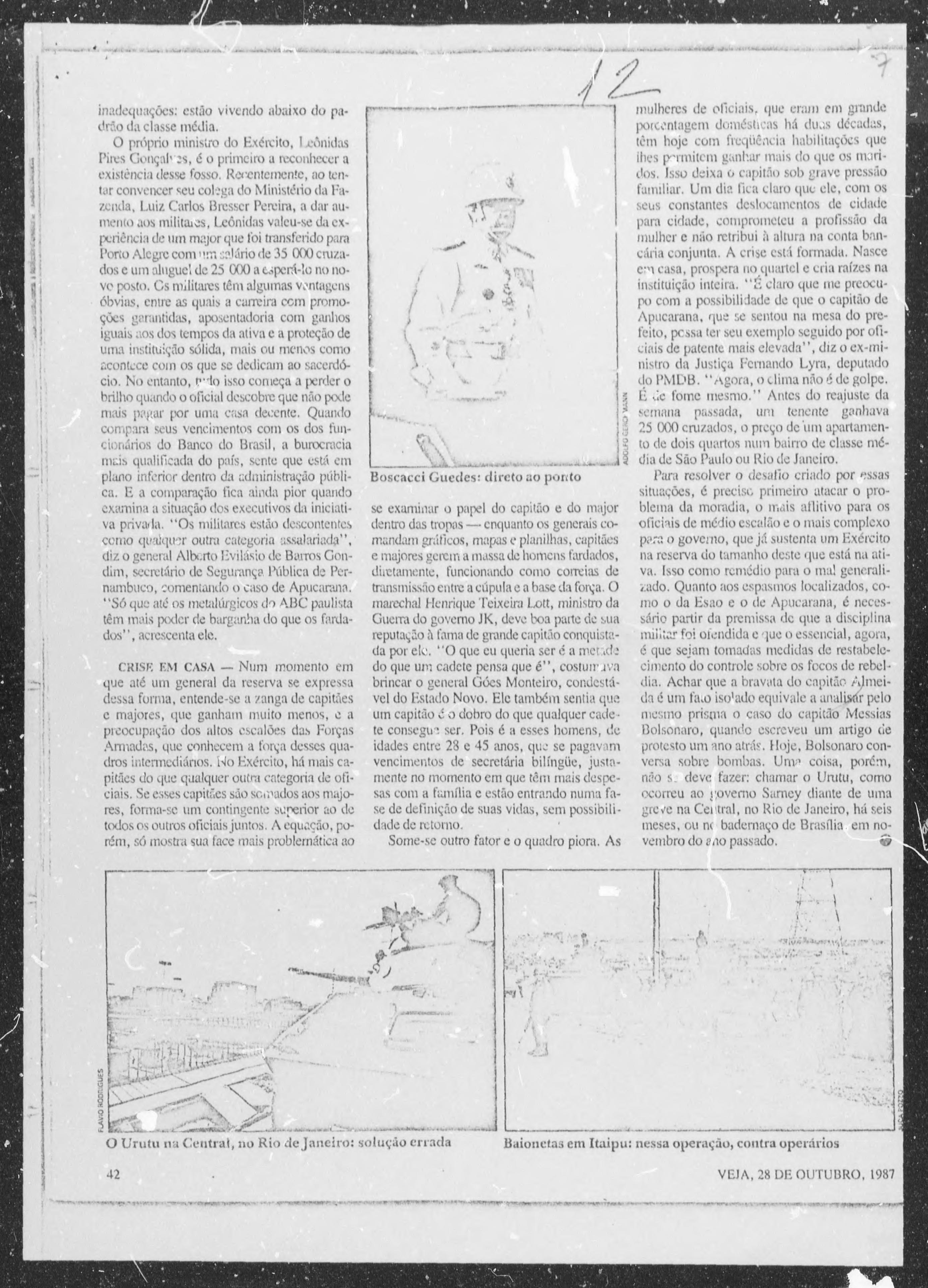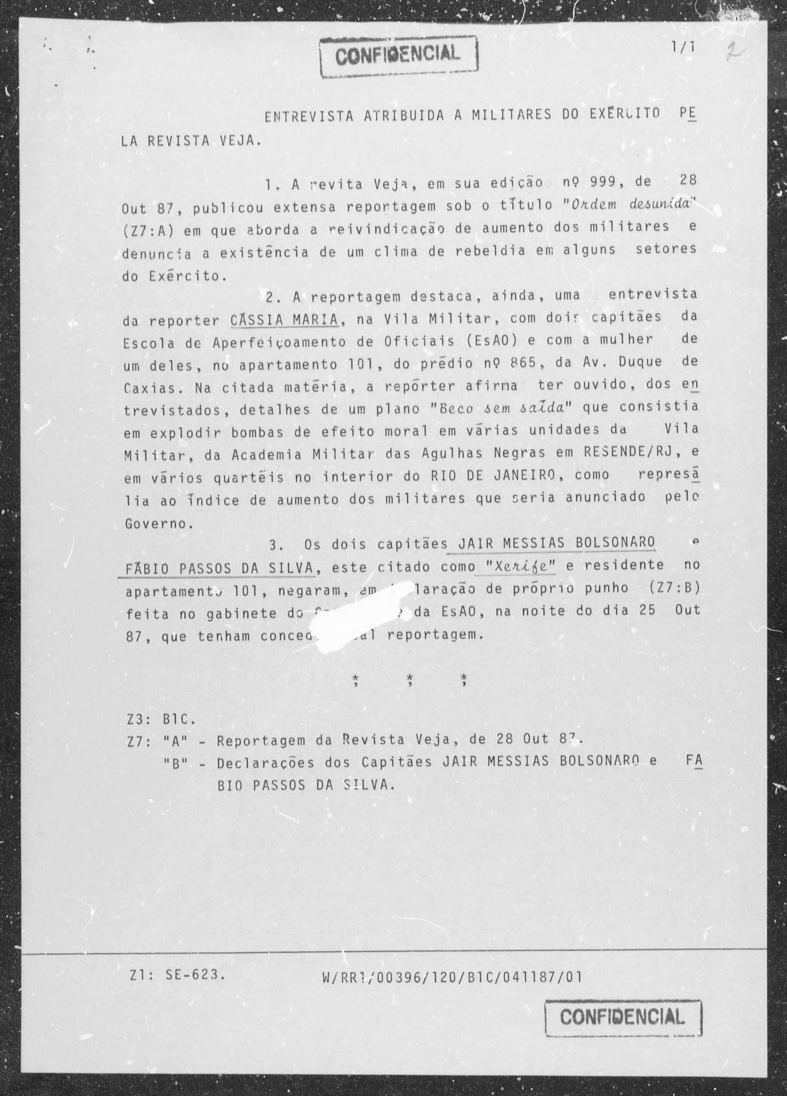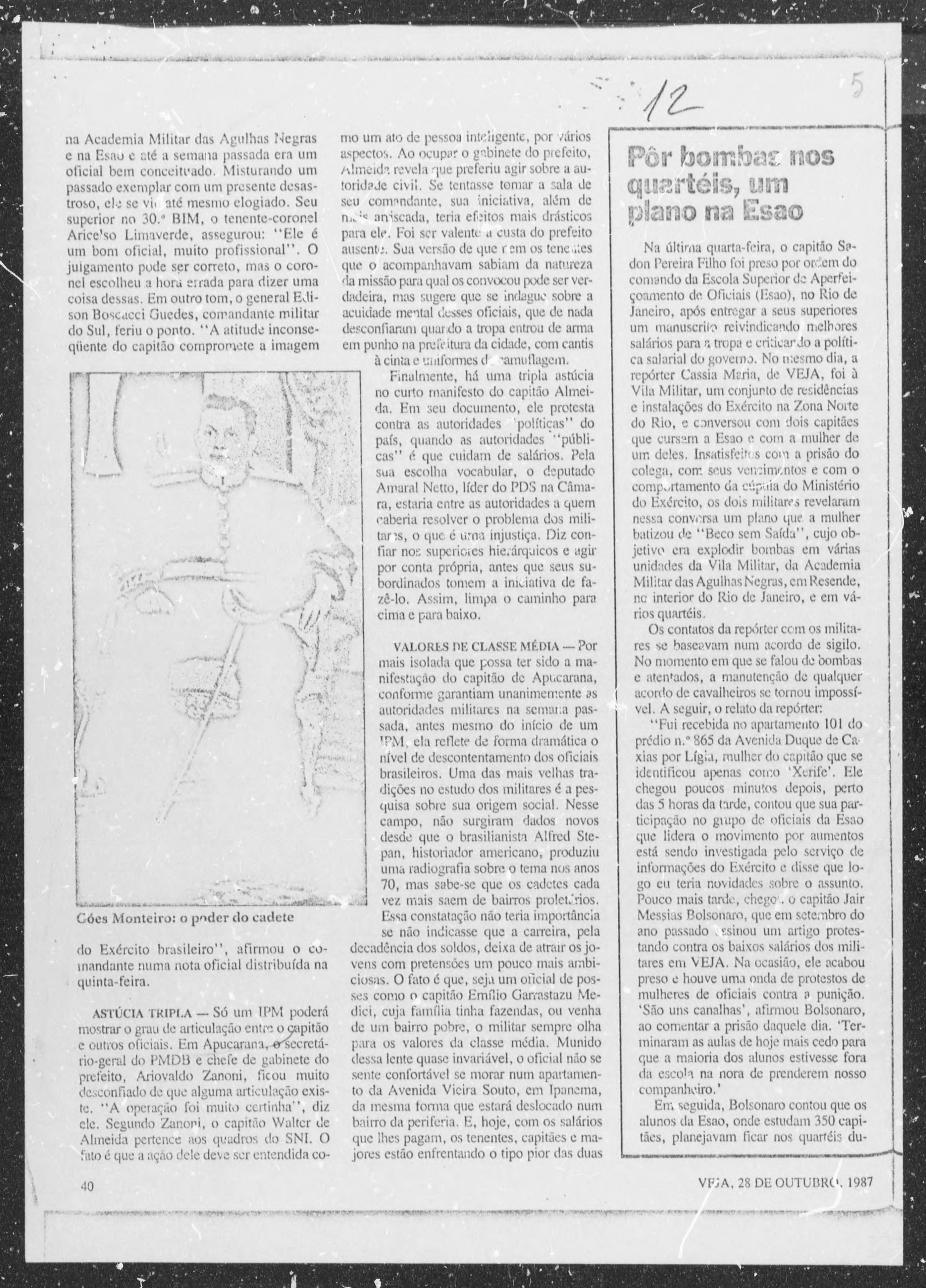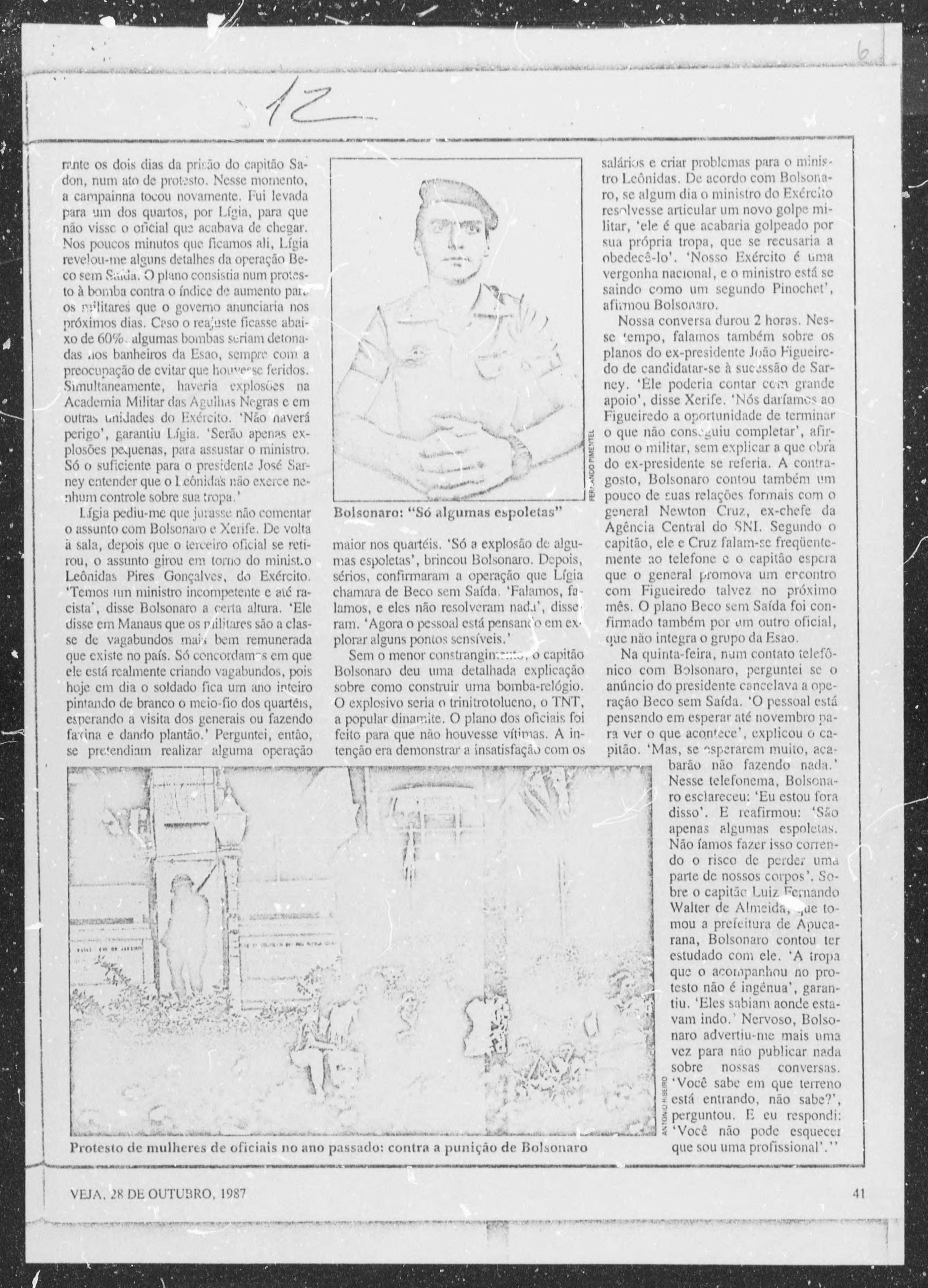 Uma reportagem publicada na revista Veja, em 25 de outubro de 1987, provocou irritação no Estado Maior das Forças Armadas – EMFA, movimentou o Centro de Informações do Exército -CIE e tirou o sono do capitão Jair Bolsonaro.