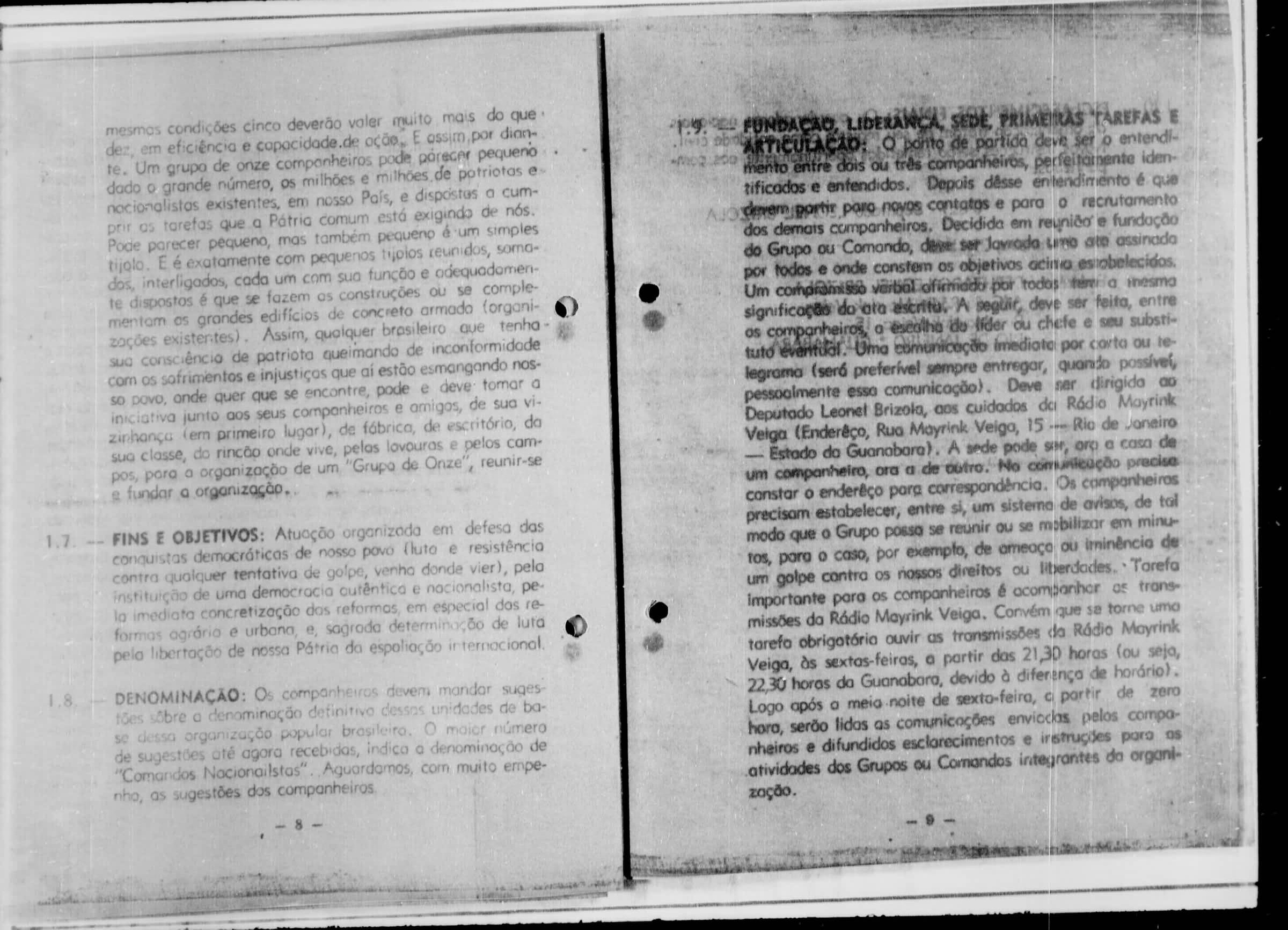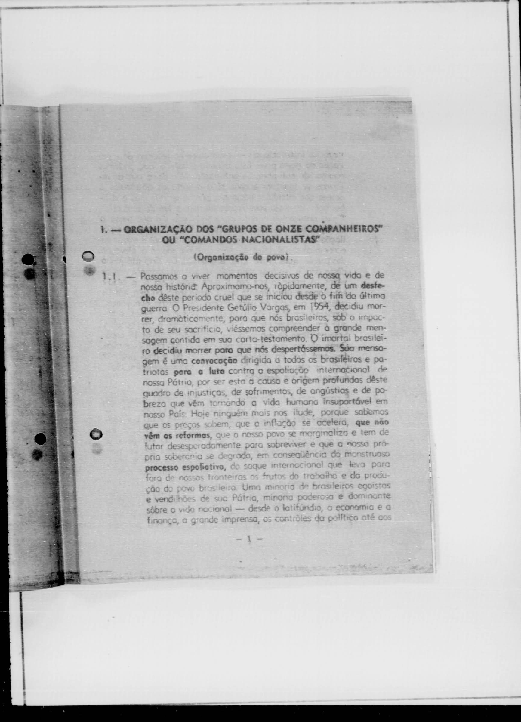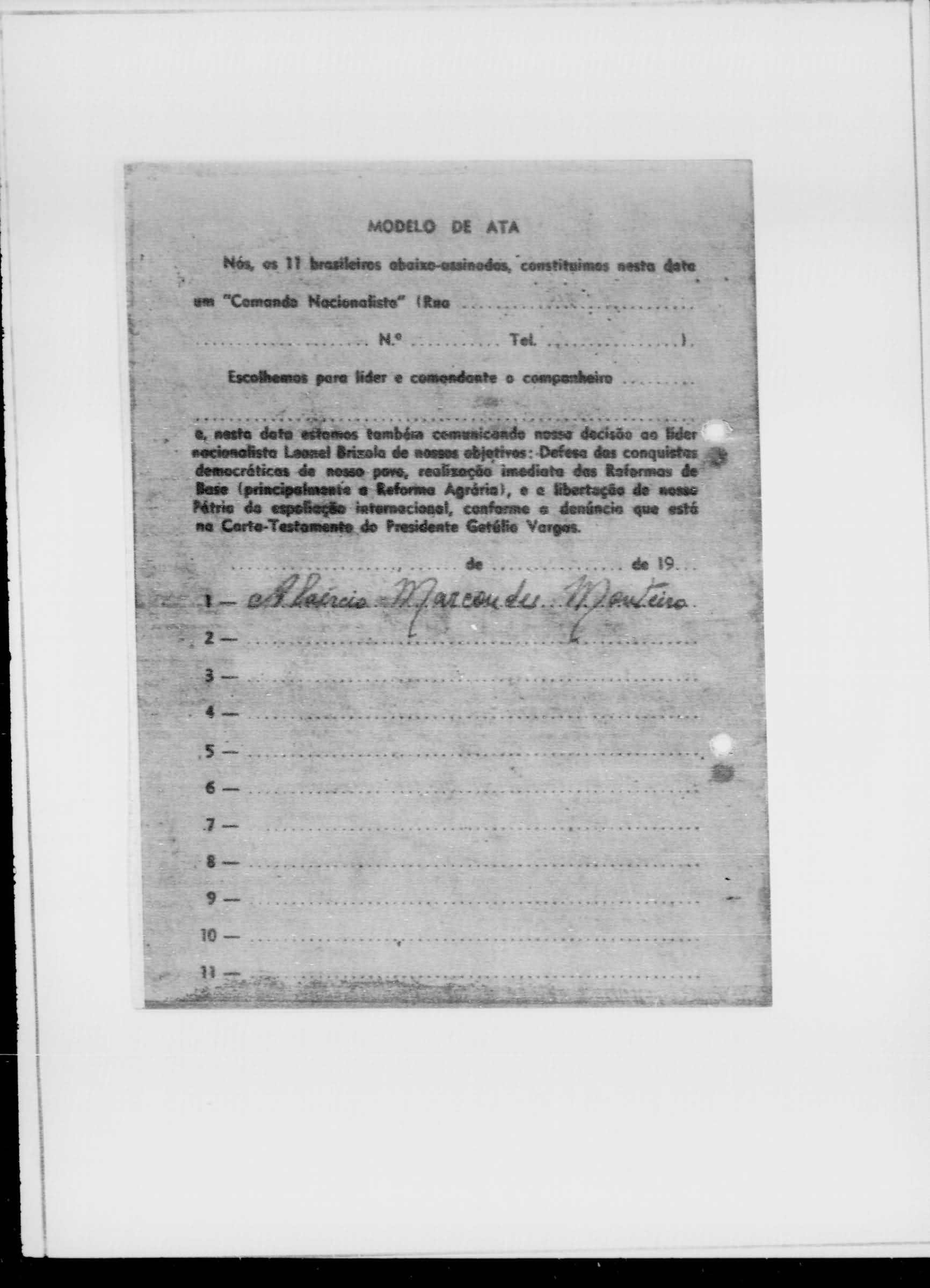 Em anexo uma cópia da Cartilha intitulada “Organização dos Grupos de Onze Companheiros ou Comandos Nacionalistas”, documento esse que reflete o clima político e social que vivia o Brasil nos primeiros anos da década de 60.