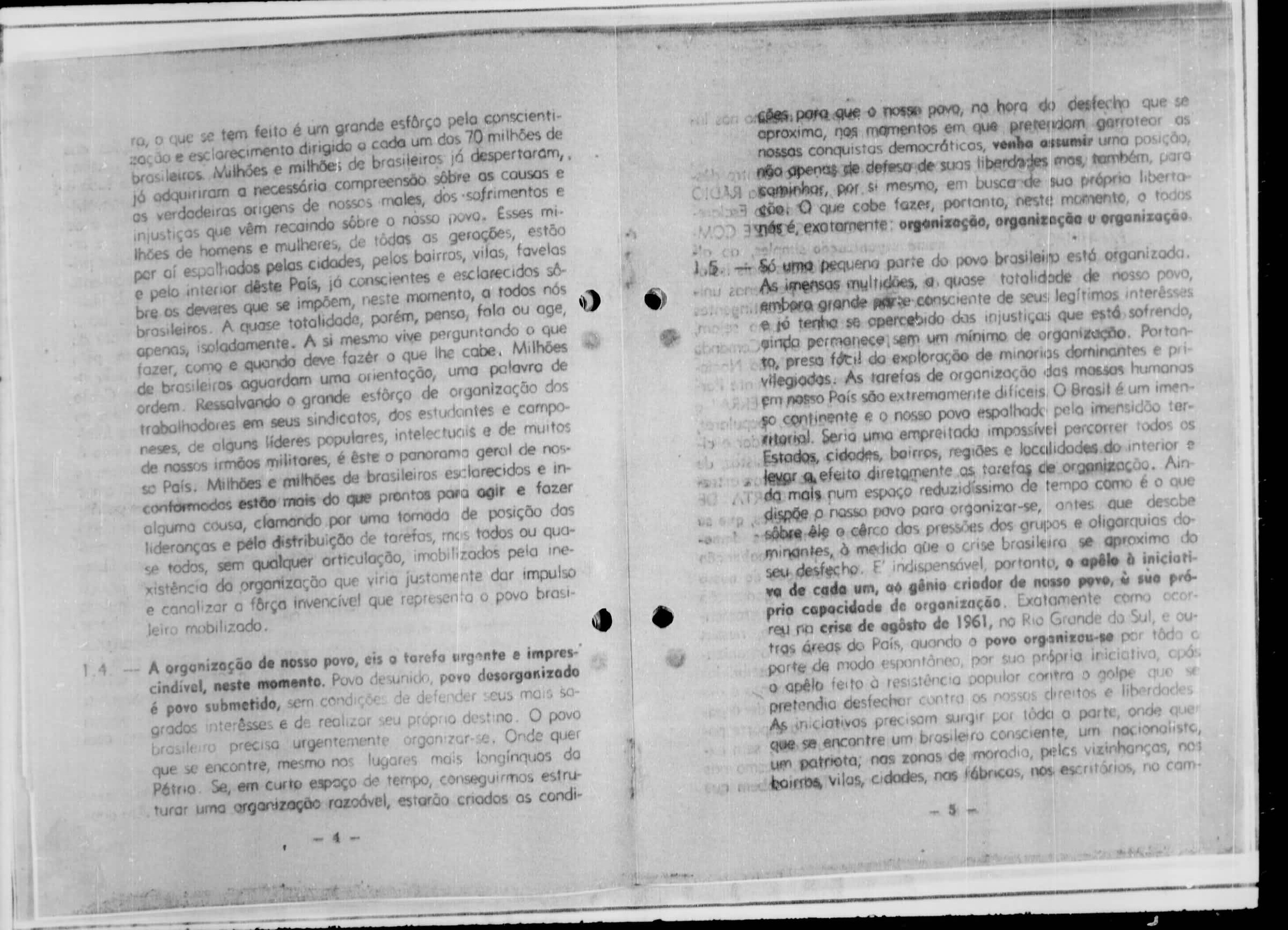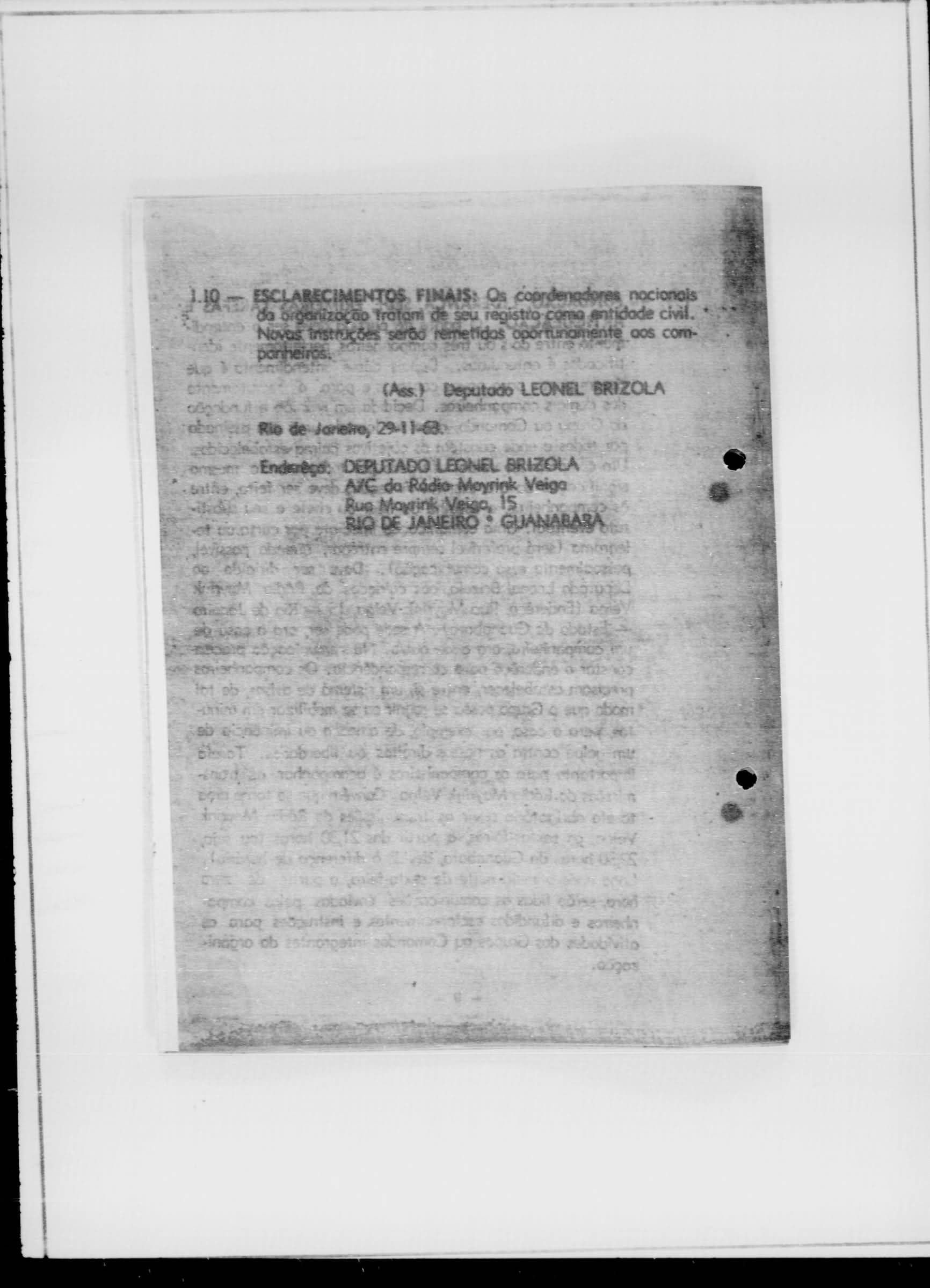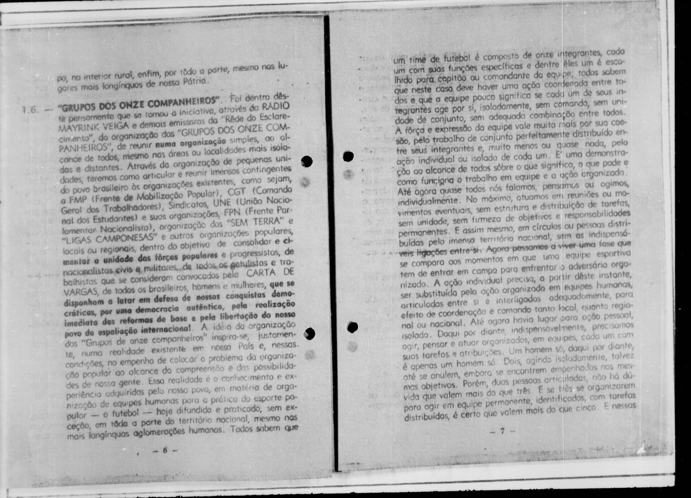 Em anexo uma cópia da Cartilha intitulada “Organização dos Grupos de Onze Companheiros ou Comandos Nacionalistas”, documento esse que reflete o clima político e social que vivia o Brasil nos primeiros anos da década de 60.