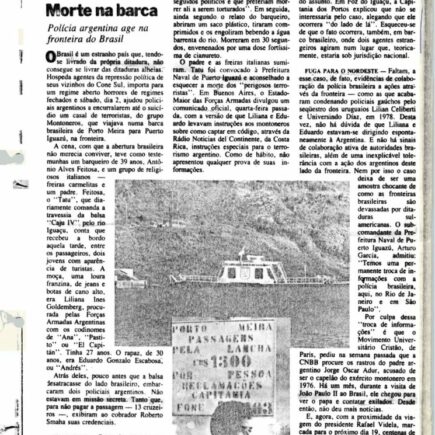 Aconteceu num sábado 2 de agosto de 1980. Na lancha Caju IV, que fazia a travessia entre Porto Meira, em Foz do Iguaçu e Puerto Iguazú, Argentina, viajavam Liliana e Eduardo. …