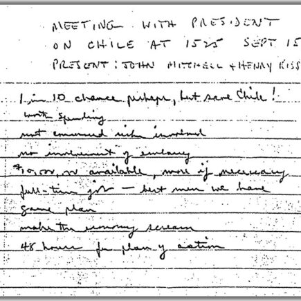 Em 15 de setembro de 1970, durante uma reunião de vinte minutos no Salão Oval entre 15h25 e 15h45, o presidente Richard Nixon ordenou que a CIA fomentasse um golpe …