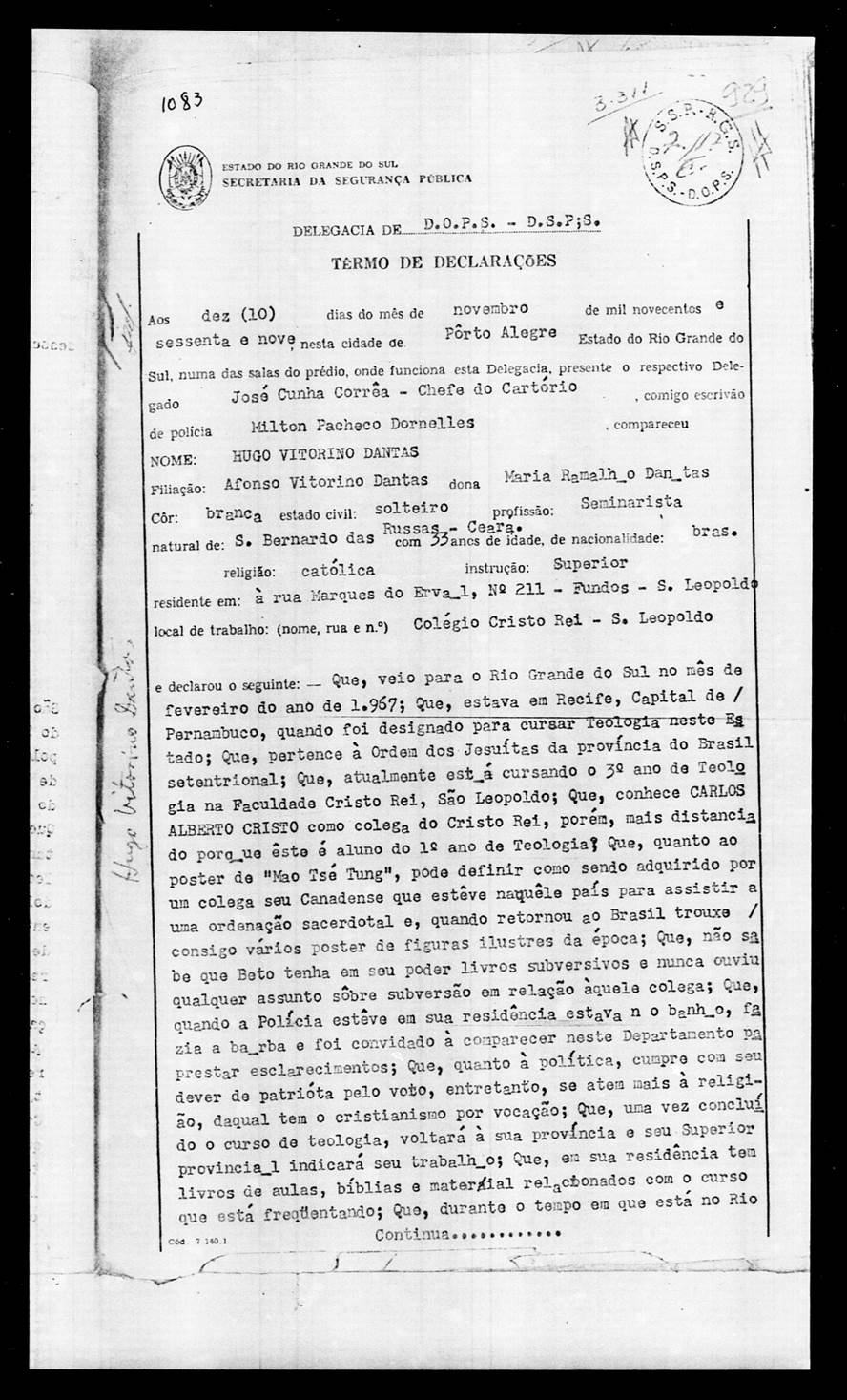 Na caca aos padres dominicanos policiais do DOPS entraram no Seminario em busca de Frei Beto e outros religiosos